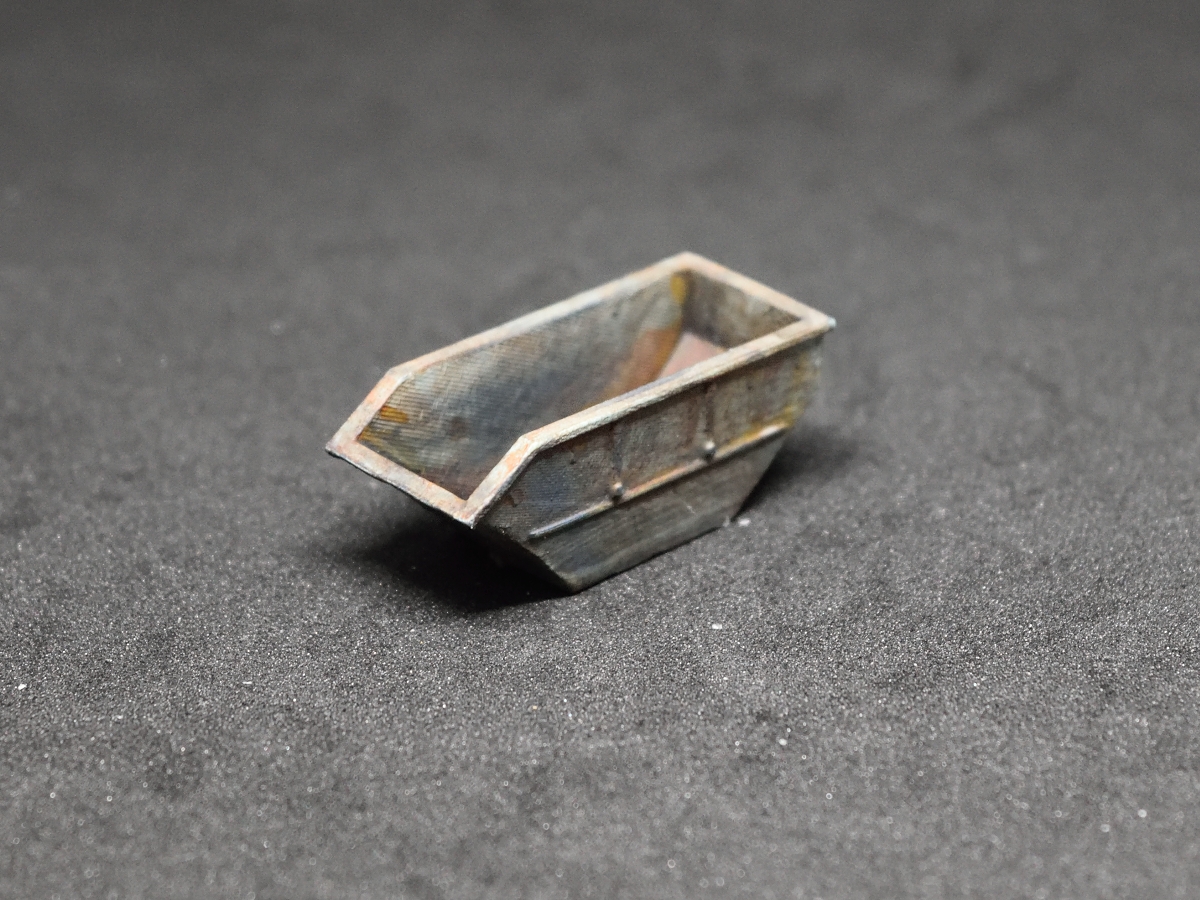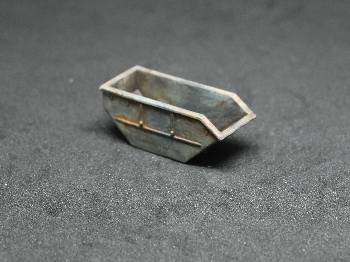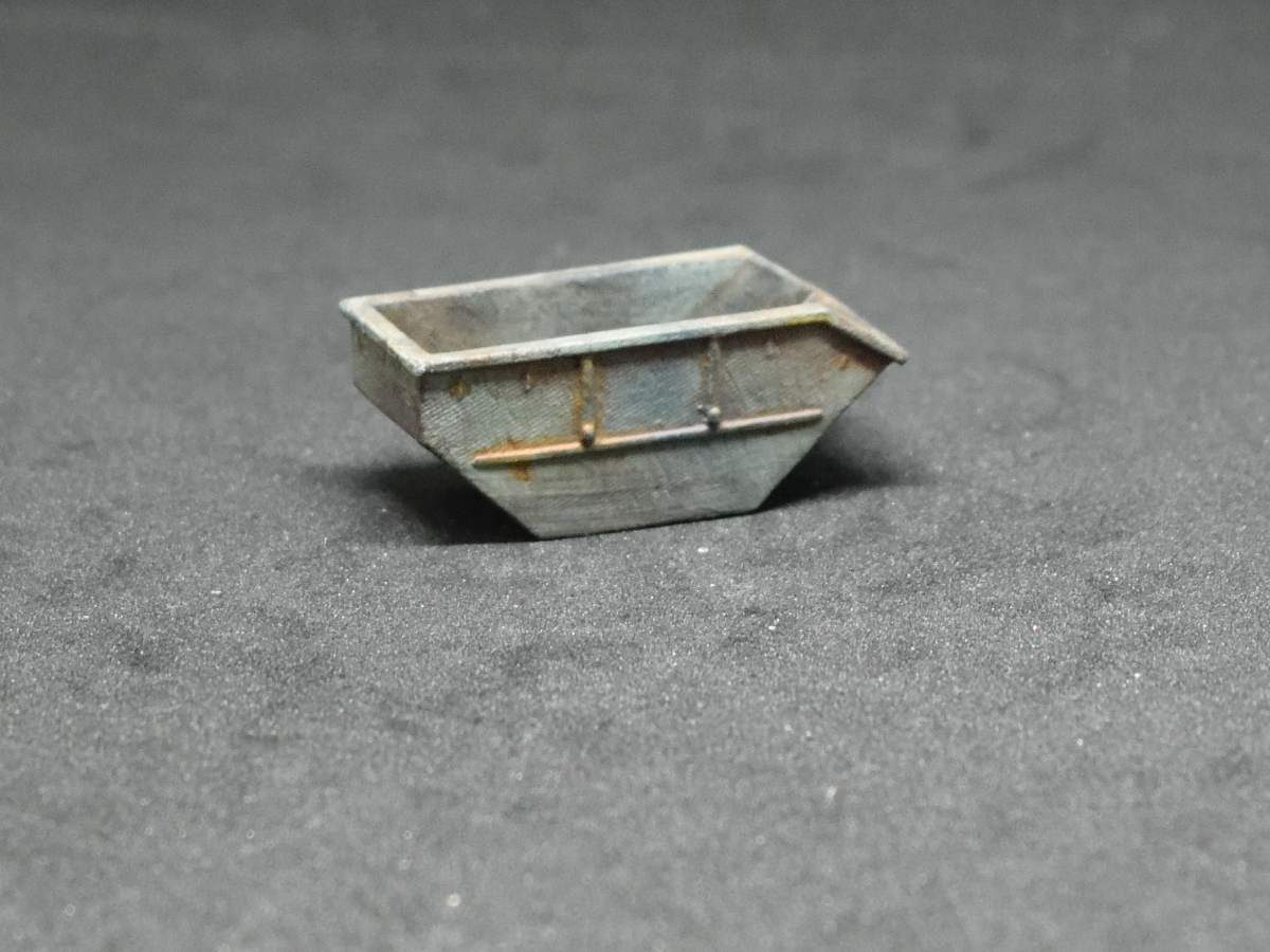 Das Modell zeigt eine mittelgrosse Absetzmulde ohne Deckel von ca. 14-15 m³, die an einer Baustelle abgemessen wurde. Es kommt in 2x Packs.
